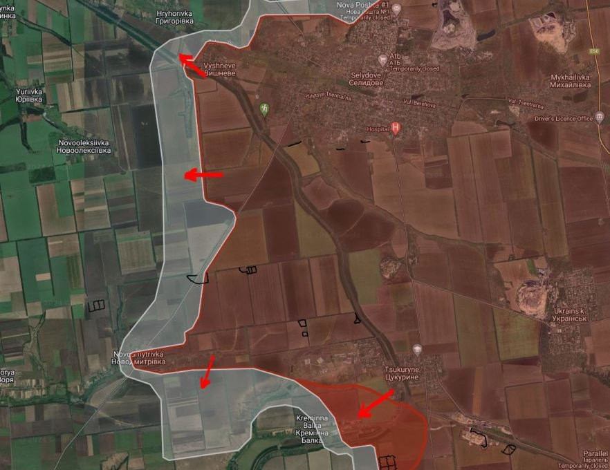 На Покровском направлении ВС РФ закрепляются западнее Селидово, давят в направлении Новоалексеевки и Григоровки.