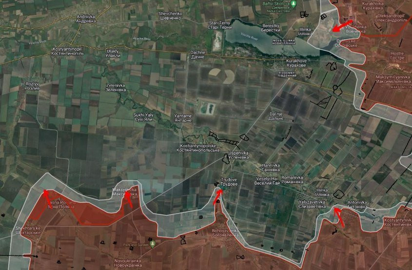Южнее Новодмитровки российские войска расширили контроль территории на 2 км, продолжают штурмовые действия в западной и центральной части населенного пункта.