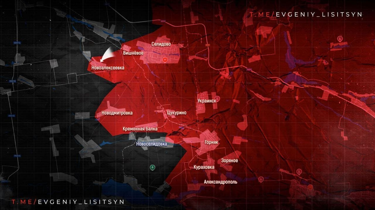 На Покровском направлении совершили успешный рывок со стороны Новодмитровки к Солнцевке и вышли на окраины села. По данным с мест, российским частям удается пробиться к ж/д полотну на холме между Вознесенкой и Берестками. К западу от Селидово российские военные подняли флаг над Новоалексеевкой.