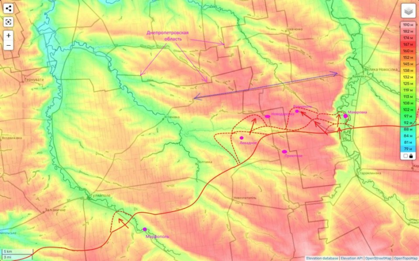 Двигаясь далее через Новодаровку по высотам в сторону Днепропетровщины, уже через несколько километров мы можем физически перерезать важнейшую рокадную дорогу Гуляйполе-Большая Новосёлка. И это не только нас выведет на границы нового для нас региона Украины, но и заметно усложнит ситуацию для БольшеНовосёловской группировки противника, отмечает Подоляка в своем Telegram-канале.