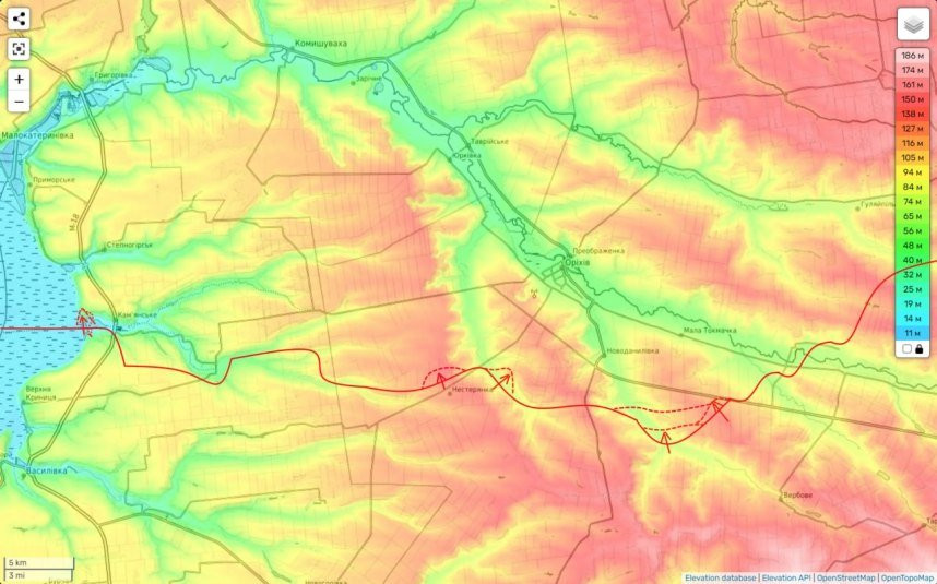 Он уточнил, что крупнейшее шоссе в этом районе проходит вдоль дамбы, а рядом находятся поля и сельские дороги, которые не смогут пропустить большие объемы войск и техники.