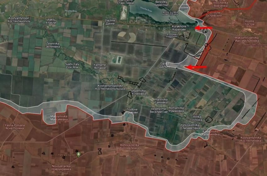 Южнее Новодаровки ВС РФ продвинулись на участке шириной до 1.4 км на глубину до 1.6 км.
