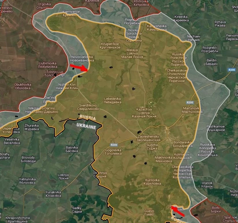 Telegram-канал "Дневник Десантника" отмечает, что у Новоивановки в Суджанском районе Курской области российские бойцы продвинулись вдоль реки еще на 1,5 км. В то же время, согласно публикации, у северной части деревни Кругленькое ФАБом-1500 ликвидировали пункт временной дислокации и технику ВСУ.