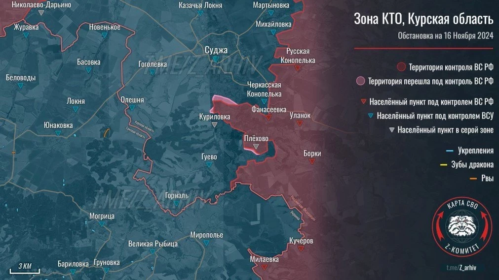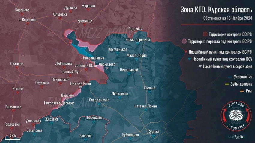 Карта боевых действий в Курской области: данные на сегодня, 17.11.2024