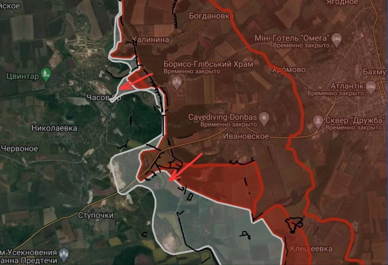 На ЧасовЯрском направлении российские войска продвинулись в центральной части города. Южнее Часового Яра отмечаются штурмовые действия в районе рудника «Юго-восточный».