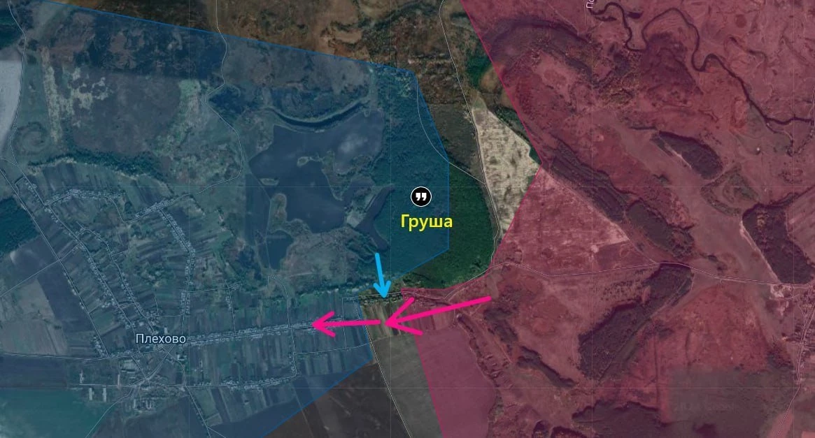 В районе Плехово по информации с мест. Наши зацепились буквально за несколько домов на восточной окраине, дальнейшее продвижение осложнено тем, что ВСУ сразу пытаются отрезать наших бойцов сверху, из леса (позиция Груша). Также по информации с мест, в этом лесу есть американские наёмники (предположительно из Блеквотер).