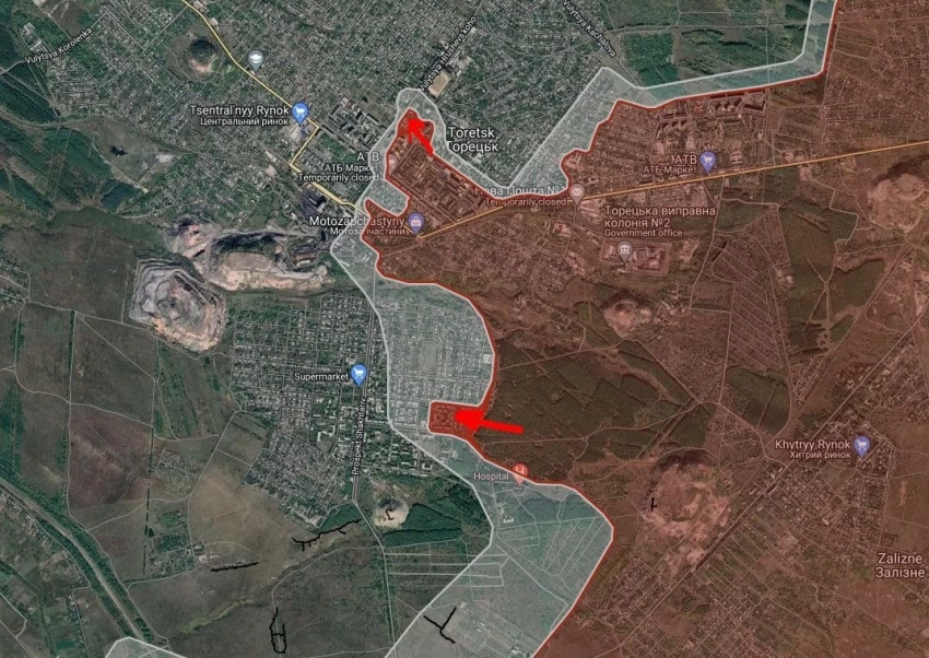 Российские войска продолжают активные бои в центре Торецка, расположенного в 55 километрах к северу от Донецка. Как сообщает Telegram-канал "Операция Z: Военкоры Русской Весны" со ссылкой на украинские источники, подразделения ВС РФ стремятся прорваться в высотную часть города, где сосредоточены основные оборонительные позиции противника.