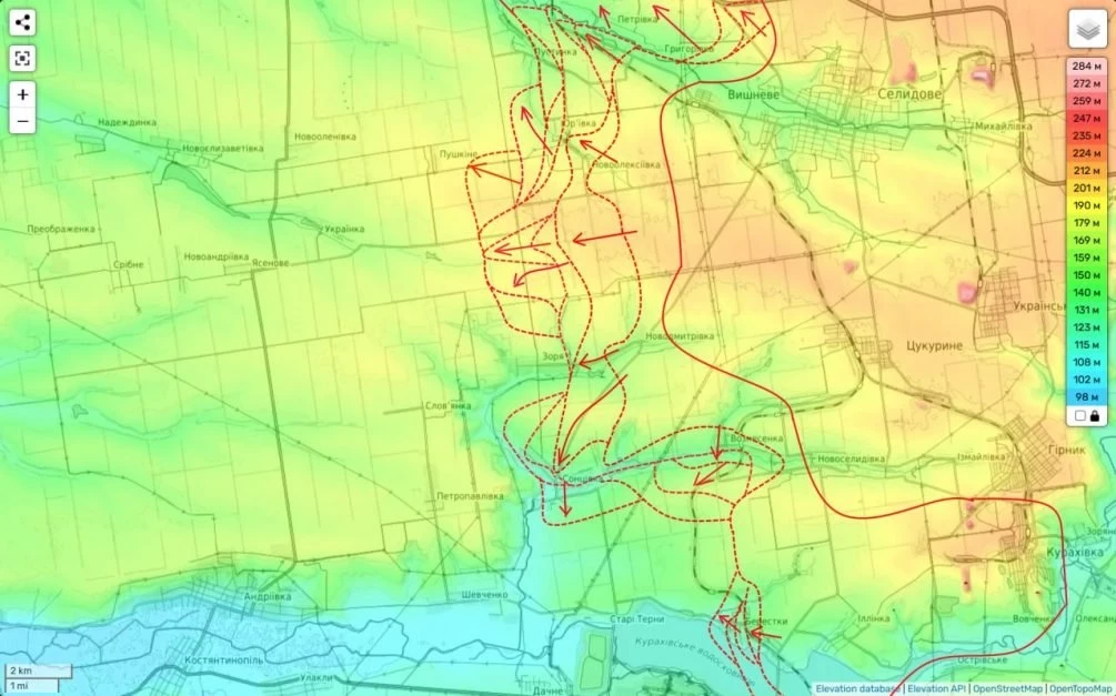 «Отсюда уже очень скоро вся тяжесть наших ударов переместится западнее и северо-западнее. Параллельно (вдоль северного берега Волчанки) отступающей из Курахово ВСУшной группировки», - прогнозирует Подоляка.