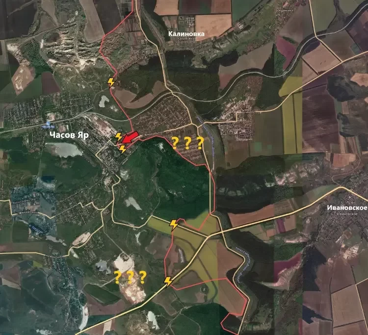 На Константиновском направлении продолжается штурм Часов Яра. Подразделения ВС РФ предпринимают попытки выбить подразделения ВСУ с территории Часовоярского огнеупорного завода (цеха 3 и 5), ведя наступление как со стороны Калиновки через урочище Орлово, так и из микрорайона Октябрьский. При этом противник оказывает сопротивление, задействуя беспилотники и перебрасывая резервы на наиболее опасные для него участки фронта. На южных окраинах Часов Яра идут бои в районе рудника Блок-9.