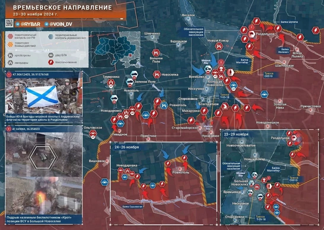 Обзор событий на фронтах специальной военной операции (СВО) на Украине, последние новости от 1 декабря 2024 года, а также свежие карты боевых действий - в материале сайта N4k.
