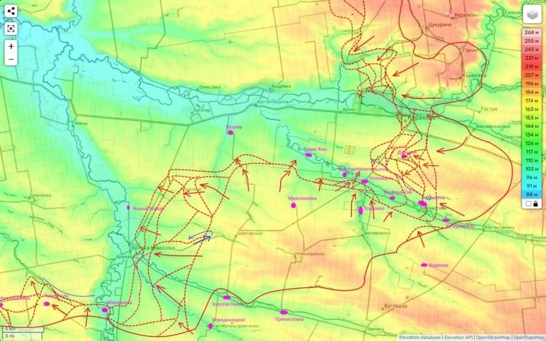 Именно поэтому основные усилия прилагаются именно на этом участке и в целом за вчера-позавчера противник был сбит со своих позиций вдоль трассы Большая Новоселка - Богатырь и сейчас пытается организовать оборону в районе Нового Комара.