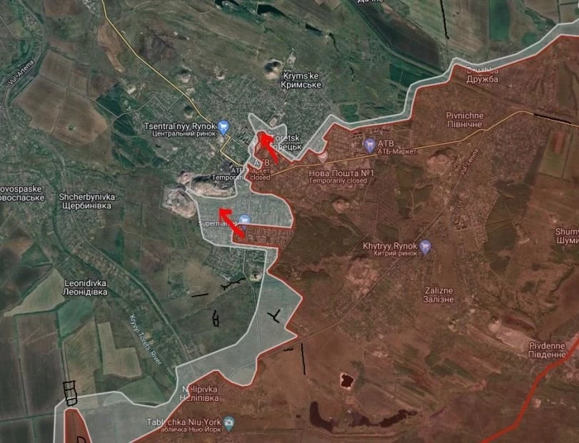 ВС РФ давят с опорой на жилой массив района Забалка в направлении терриконов шахты «Центральная».