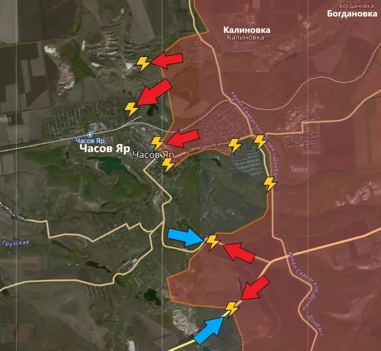 На Константиновском направлении продолжается штурм Часов Яра. Подразделения ВС РФ ведут бои на руднике Северный, а также зашли в микрорайон Северный, где закрепились на северо-восточных окраинах. Помимо этого, продолжается штурм Часовоярского огнеупорного завода (цеха 3 и 5). На окраинах микрорайона Новый идут жесткие боестолкновения. Выдавить врага с этого участка пока что не выходит, несмотря на полуокружение. К юго-востоку от Часов Яра ВСУ проводят контратаки, стараясь оттеснить наших бойцов от подступов к городу.