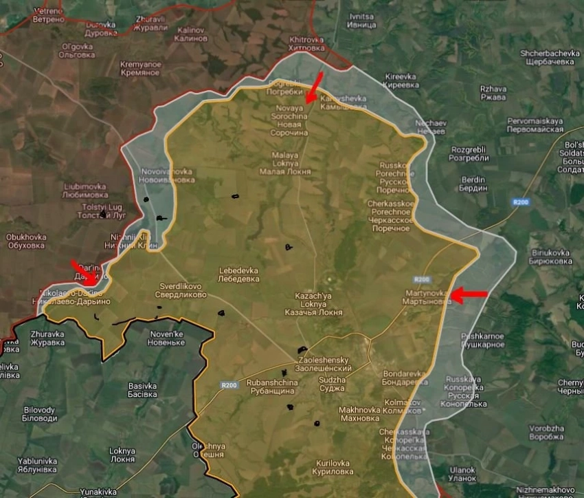 Украинские войска пытаются контратаковать населённый пункт Дарьино, продолжаются встречные бои в населённом пункте Николаево-Дарьино.