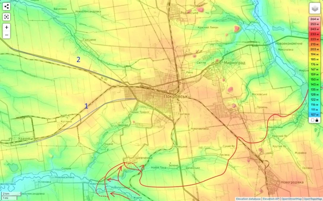 К тому же уже сегодня противник жалуется, что дорога снабжения в Покровск через Удачное (1) превратилась в настоящую "дорогу смерти", где наши дронщики выносят все, что движется. Причем, сегодня уже (в следствие переноса позиций северо-западней) они начали работать и по трассе М-30 (из Днепропетровска).