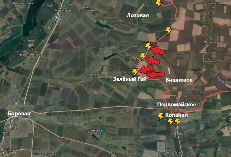 На Боровском направлении в Копанках продолжаются бои. Населённый пункт находится в серой зоне. Подразделения В РФ существенно продвинулись к северо-западу от Вишневого. Начались бои за Зелёный Гай. Село также попало в серую зону.