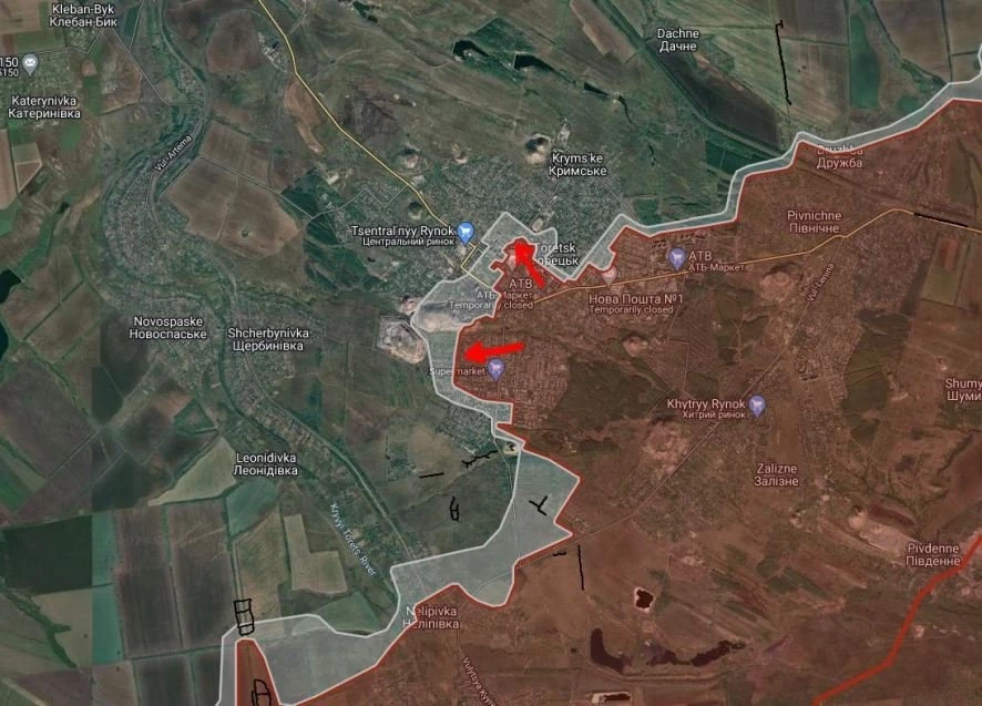 На Торецком направлении в Торецке ВС РФ имеют тактические успехи в центральной части города, расширили контроль территории южнее терриконов шахты «Центральная».