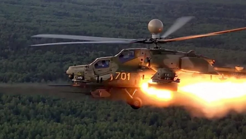Отмечается, что экипаж армейской авиации на вертолёте Ми-28НМ в составе смешанной тактической группы выполнял боевую задачу по поддержке группировки "Север".