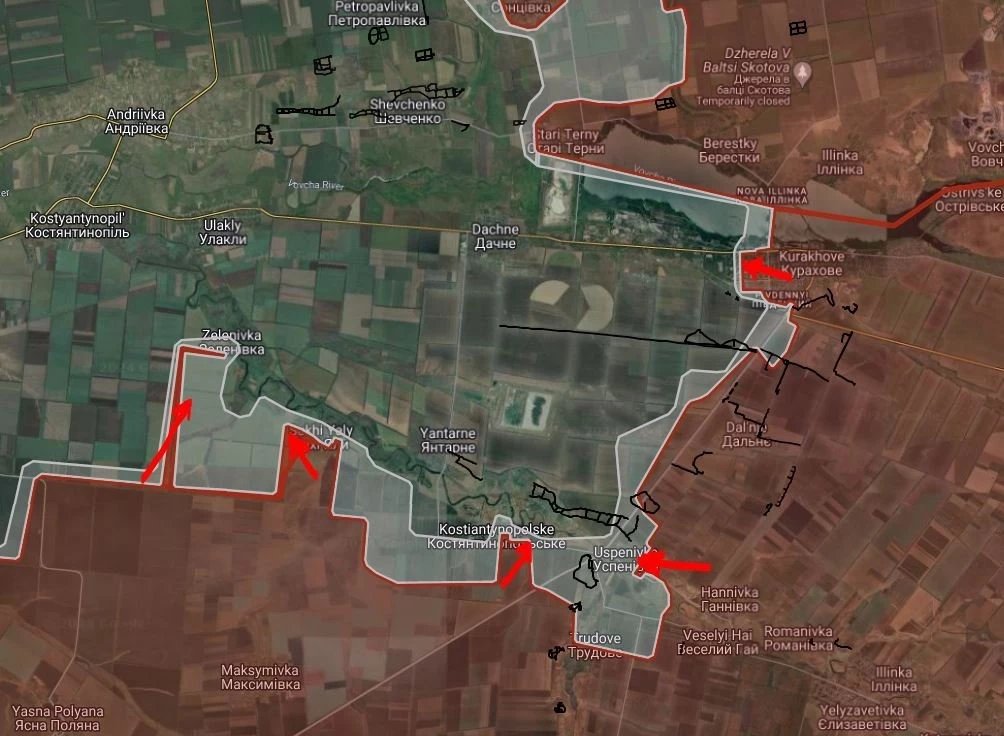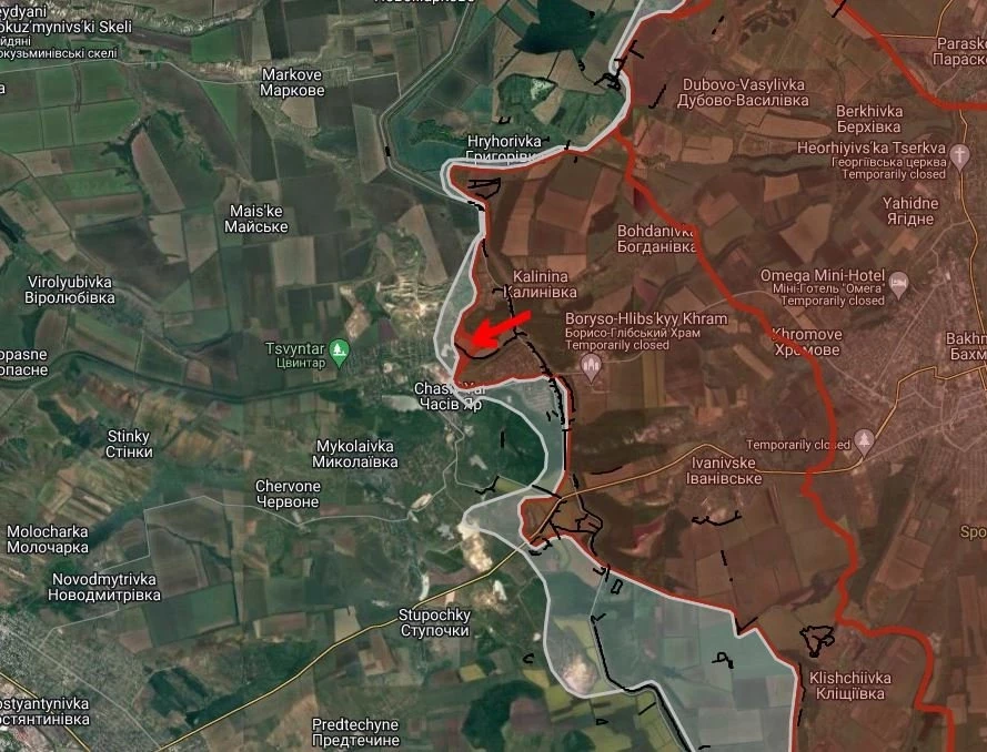 Также сообщается, что российская армия продолжает наступление в районе населенного пункта Даченское под Красноармейском, а также к северу от Часов Яра, что создает предпосылки для окружения украинских сил в районе Макаровки.