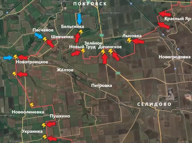 На Покровском направлении подразделения ВС РФ расширили зону контроля западнее Красного Яра. В Лысовке продолжаются встречные бои. Нашим воинам никак не удаётся зачистить населённый пункт от вражеских сил.
