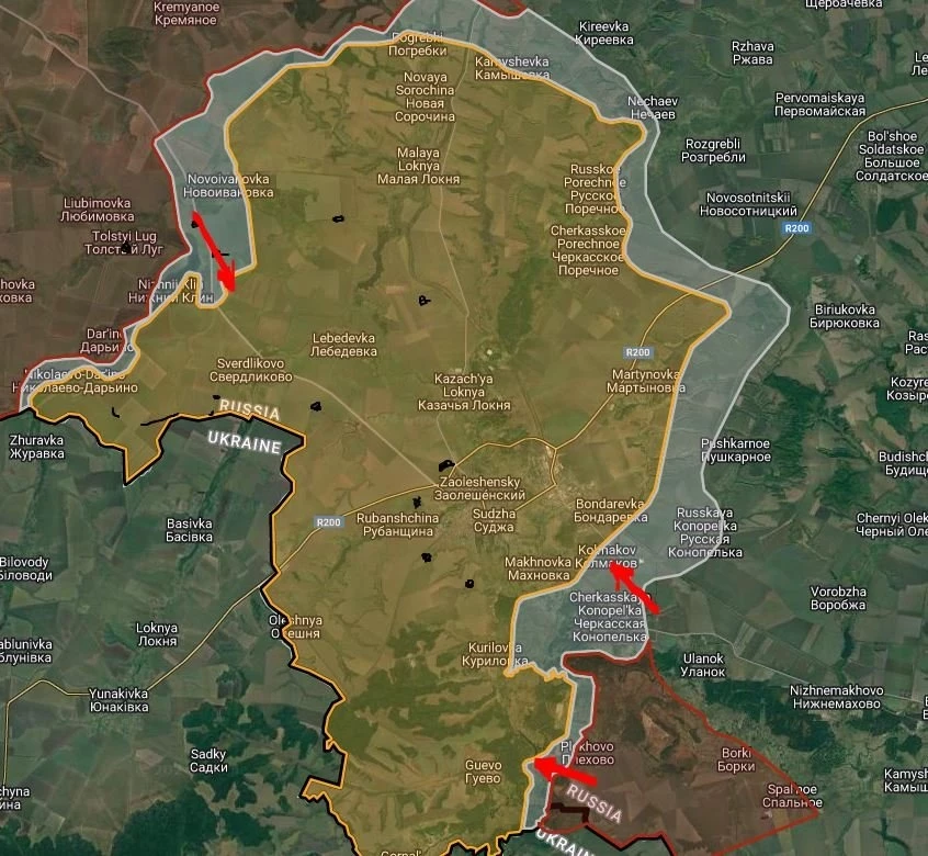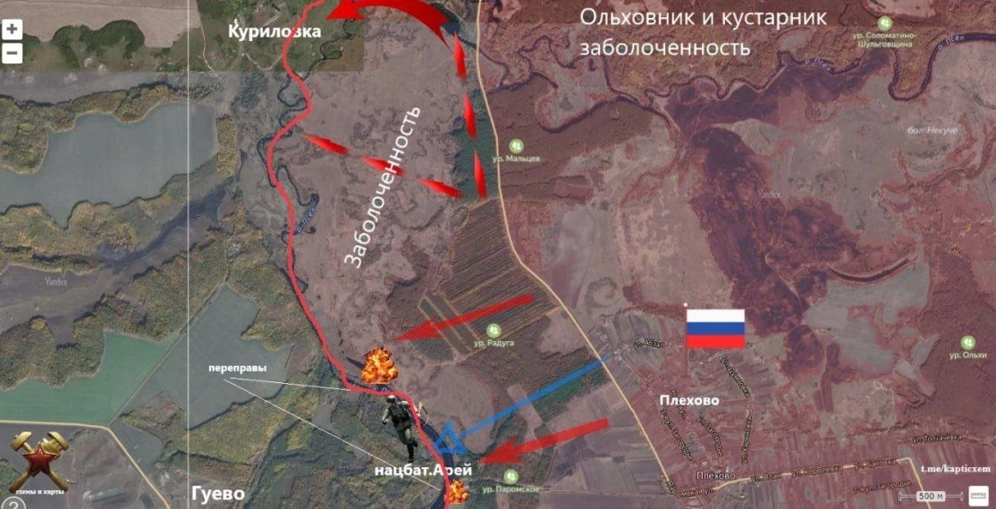 Вместе с этим российские бойцы давят в направлении Гуево. Имеются тактические успехи в районе Плёхово и Черкасской Конопельки, пишет Telegram-канал "БелВПО".