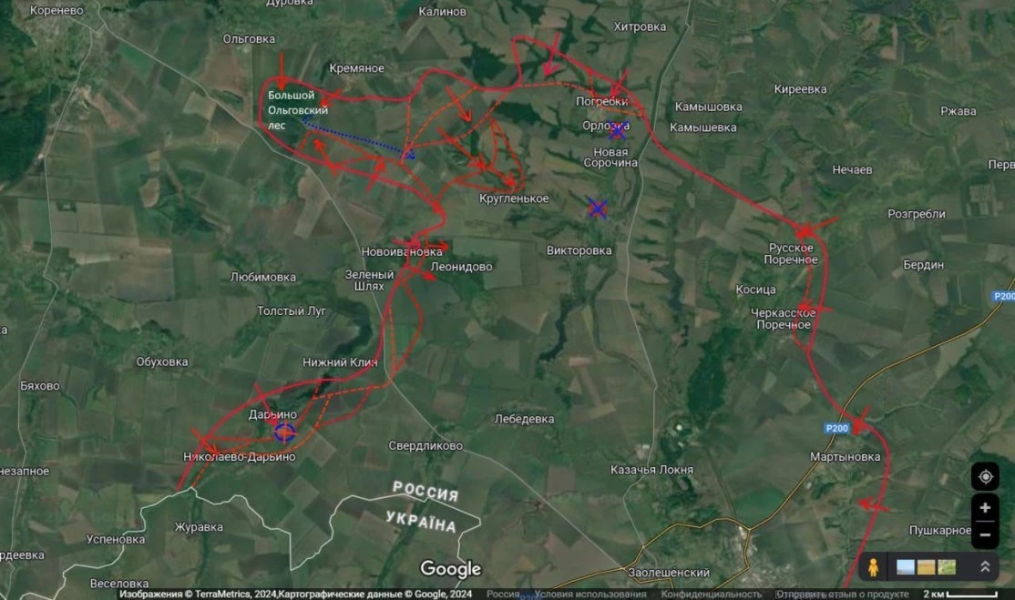 На Курском направлении российские силы продолжают развивать наступление. По информации военного блогера Юрия Подоляки, на сегодняшний день ВС РФ вышли к окраинам населенного пункта Кругленькое, успешно продвинувшись северо-западнее деревни.