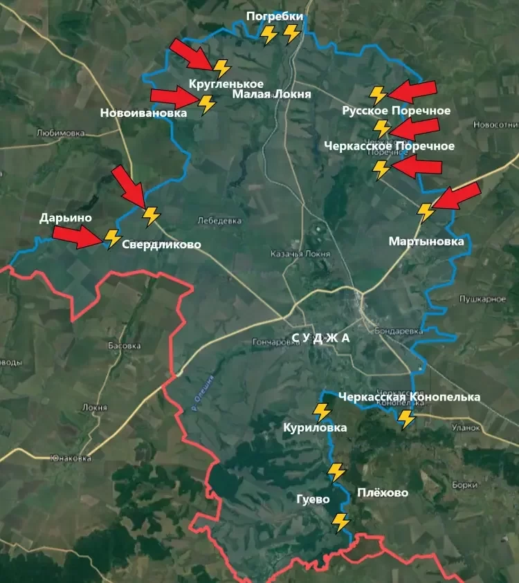 По данным Telegram-канала Military Analytics штурмовые группы Северян смогли продвинуться в районе Черкасской Конопельки и на участке фронта Дарьино - Нижний Клин. Также есть продвижения на севере Суджанского района. Продолжается зачистка лесопосадок восточнее Новоивановки.