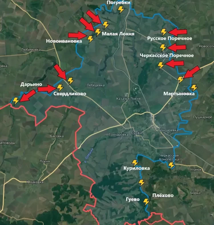 Идут бои в районе Русского Поречного и Черкасского Поречного. Здесь большой участок территории находится в серой зоне. Полное освобождение населённых пунктов пока что не подтверждается. Продолжаются бои и в окрестностях Мартыновки.
