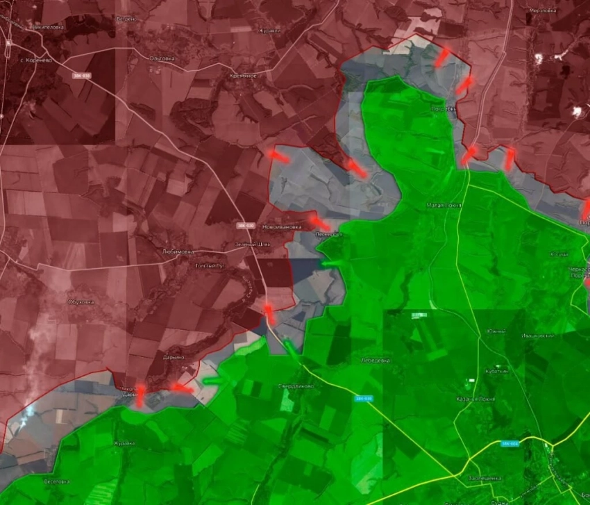 В направлении на Леонидово ВС РФ наступают севернее села, взяли под наш контроль еще одну лесополосу. В самом селе ВСУ основательно закрепились и заминировали все подходы с запада.