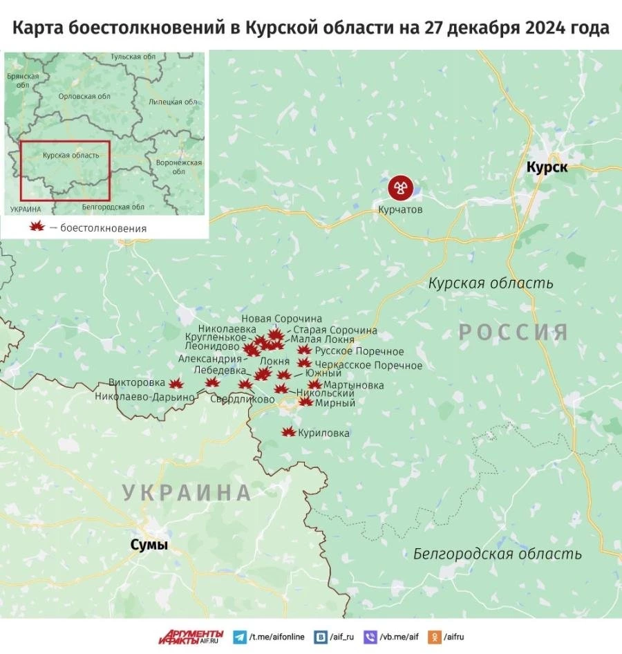 Карта боевых действий в Курской области: данные на сегодня, 27.12.2024