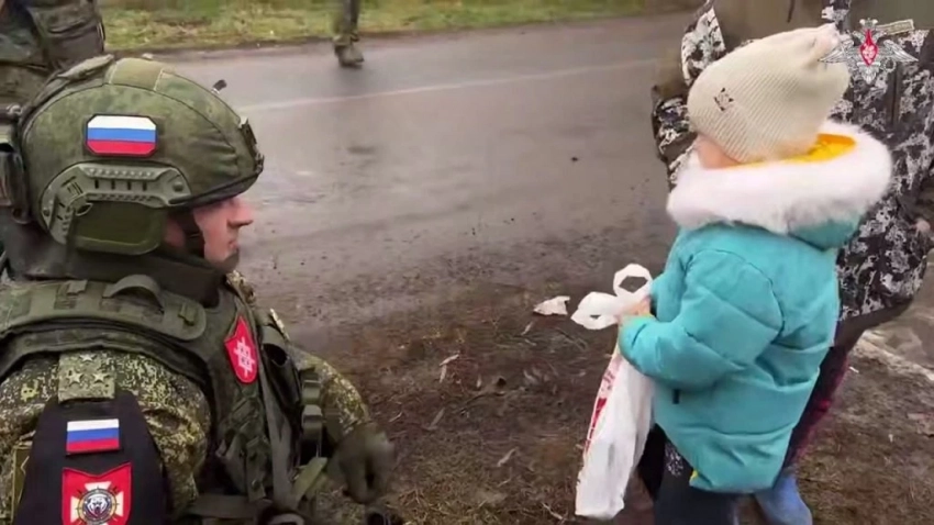 Военнослужащие приносят жителям, среди которых есть и дети, новогодние подарки, продукты, товары первой необходимости.
