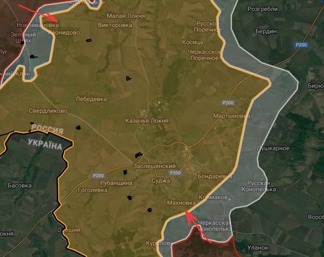 В свою очередь Telegram-канал "Северный ветер" сообщил, что штурмовые группы ВС РФ с упорными боями продвигаются в лесополосах Суджанского района Курской области, а также в окрестностях Леонидово и Куриловки.