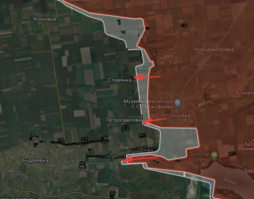 ВС РФ расширили контроль территории западнее Волково на глубину до 800 м., в Солёном на глубину до 600 м. и в районе Новоелизаветовки на участке шириной до 1.42 км на глубину до 650 м.