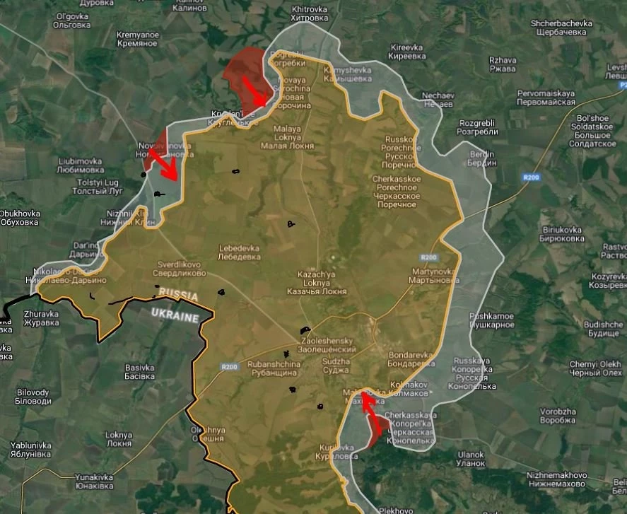 Telegram-канал "Северный ветер" сообщил, что штурмовые группы ВС РФ с упорными боями продвинулись в окрестностях Орловки, Старой Сорочины и Погребков, продолжается ликвидация противника в лесополосах Суджанского района.