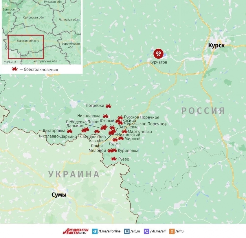 Telegram-канал "Два майора" при этом акцентирует внимание на том, что информация в сети о событиях в Курской области зачастую или опережает события, или намеренно не освещается по понятным причинам, идут тяжелые встречные бои. Гарантированно можно говорить только боях вблизи конкретных населённых пунктов ввиду высокой интенсивности боевых действий. ВС России сохраняют инициативу, группировка войск "Север" сообщает об окружении врага на опорных пунктах между Гуево и Куриловка. Наши штурмовые отряды с упорными боями продвигаются в лесополосах Суджанского приграничья, в окрестностях населенных пунктов Дарьино, Свердликово, Орловка, Николаевка, Махновка и Черкасское Поречное. В плен пять военнослужащих ВСУ и наёмник из Колумбии. Противник за прошедшие сутки перебросил подразделения из нескольких разных бригад территориальной обороны из Краматорска и группу ССО из Днепропетровской области.