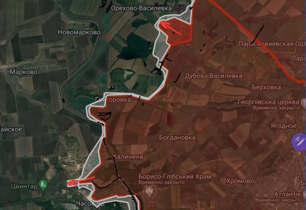 ЧасовЯрское направление. Российские войска ведут штурмовые действия в центральной части Орехово-Васильевки.