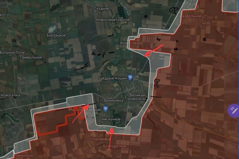 Великоновосёлковское направление. Имеются тактические успехи российских войск в районе Великой Новоселки, продвинулись у Нового Комара, Времьевки и Нескучного.