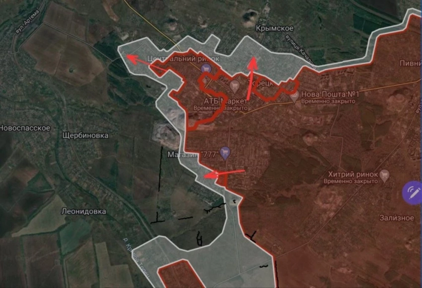 Торецкое направление. ВС РФ ведут штурмовые действия на западной, северной и южной окраинах Торецка, имеются тактические успехи.