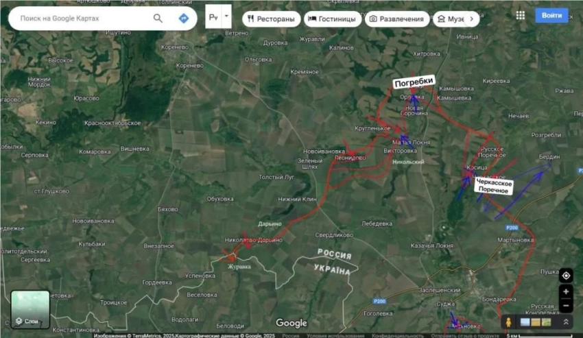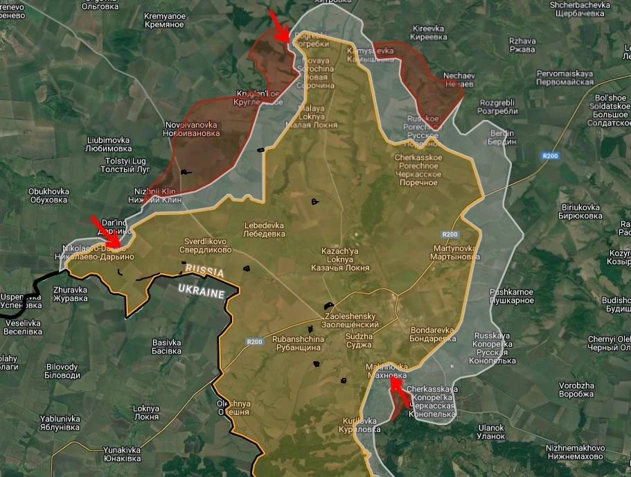 В Курской области отмечаются активные боестолкновения в районе Николаево-Дарьино и Погребков.