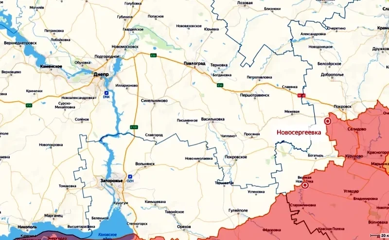 Пожалуй, ближе всего к админгранице этого региона ВС РФ продвинулись в ходе наступления севернее села Новосергеевка. Этот населенный пункт расположен, в свою очередь, к югу от Красноармейска (Покровска) в ДНР, фланговый охват которого продолжают наши войска. Российские источники сообщают, что на этом участке до границы Днепропетровской области расстояние от наших передовых частей составляет уже менее четырех километров.