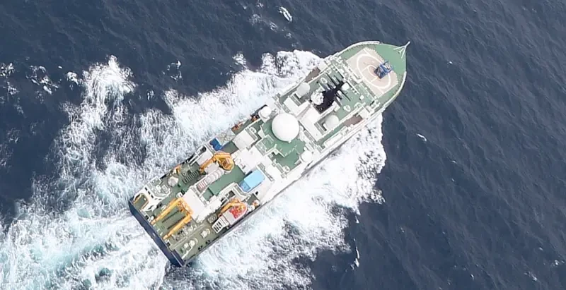 Фрегат КВМФ Великобритании HMS Somerset ведёт наблюдение за «Янтарем», январь 2025 г.