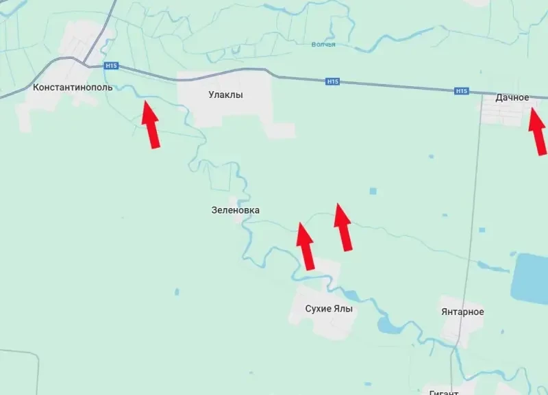 При учёте того, что ранее наши войска вклинились в оборону противника между Улаклы и Константинополем (там сейчас по большей части серая зона), гарнизон ВСУ в первом из указанных населённых пунктов близок к тому, чтобы оказаться примерно в той же ситуации, что и гарнизон противника в Великой Новосёлке. Речь идёт о том, что с трёх направлений – российские войска, а ещё одно – перекрыто естественной водной преградой – рекой Сухие Ялы. В Великой Новосёлке после попадания противника в окружение ведётся его уничтожение имеющимися силами и средствами, включая ТОС-2 «Тосочка».