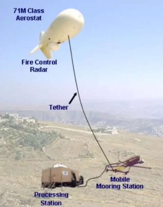 Комплекс радиолокационного обнаружения ASRR включает в себя привязной аэростат с РЛС, подвешенной в нижней его части.