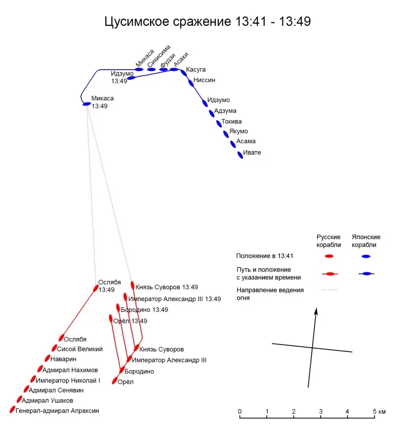 Схема маневрирования в Цусимском сражении 13:41-13:49