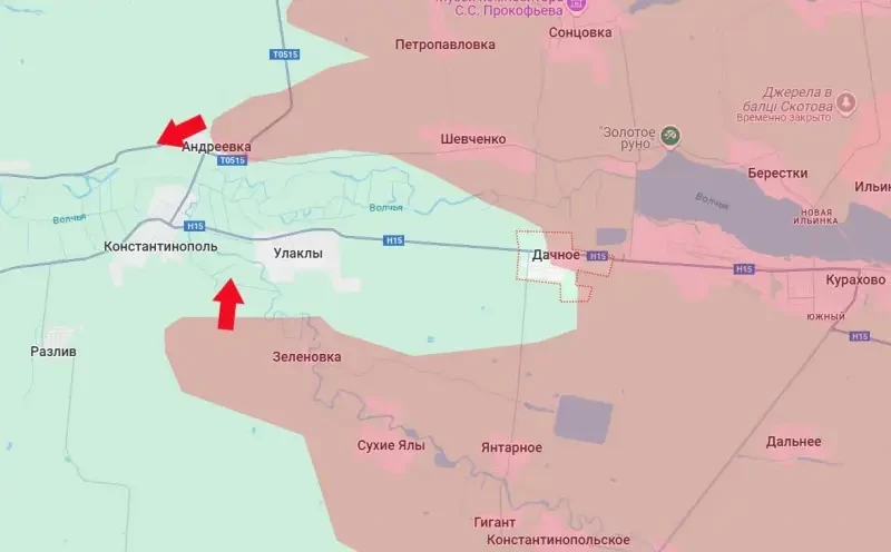 Кстати, между Константинополем и Улаклы противнику перемещаться свободно уже нельзя. Контроля над частью дороги у ВСУ нет, на картах украинских ресурсов этот участок обозначается в качестве серой зоны.