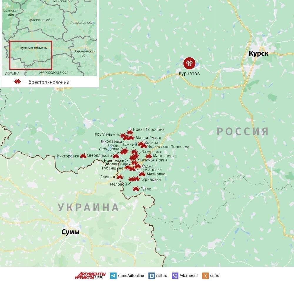 В районе Свердликово ВС РФ зашли на окраины села и выбили ВСУ из нескольких опорных пунктов в окрестных лесополосах. Идут упорные бои. Свердликово стоит примерно в 11 км к северо-западу от Суджи, его потеря может резко ухудшить логистику противника.