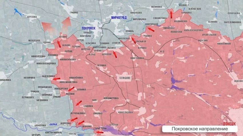На Покровском (Красноармейском) направлении ВС России развивают тактические успехи севернее Воздвиженки, восточнее н.п. Котлино, в районе н.п. Барановка, Шевченко, Успеновка, Надеевка и Андреевка, уточняет Telegram-канал "Два майора".