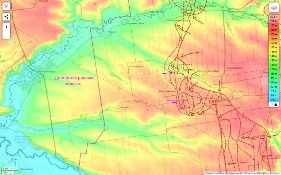Ещё одним участком фронта, где идут активные боевые действия, является междуречье рек Волчья и Солёная. Противник, осознав угрозу нашего относительно быстрого продвижения в районе Серебряного - Запорожья - Надеевка, вчера пытался короткой контратакой на БМП «Брэдли» (а значит с привлечением, опытных не «бусифицированных» солдат) вернуть контроль над последней. Атака эта была отбита, а противник обнулен. Но это не позволило нам вчера здесь наступать.