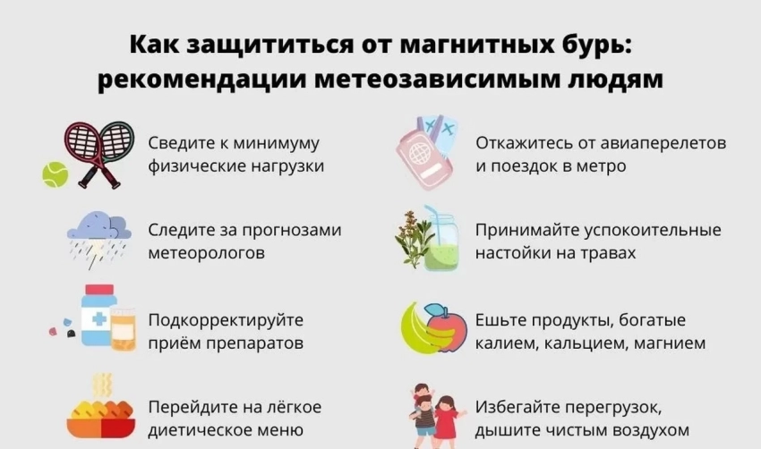 Как справиться с влиянием геомагнитных бурь (инфографика с советами)