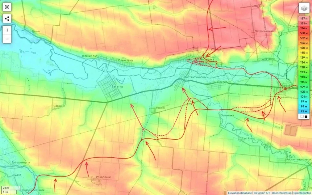 Одним из которых и является населённый пункт Запорожье. Отсюда любое продвижение здесь крайне затруднительно. И тем не менее оно здесь есть. Наши части заняв восточную часть села (это одна длинная улица примерно 2 км длиной), начали бои за его центр.